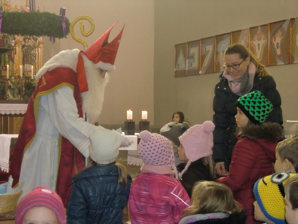 Und ganz besonderer Besuch kam extra in die Kirche: der Hl. Bischof Nikolaus. Er hörte zu, derweil Marion den Kindern eine Geschichte erzählte und feierten den restlichen Gottesdienst mit. Ganz zum Schluss bekamen alle braven Kinder, aber auch die braven Eltern, einen kleinen Schokonikolaus mit nach Hause.