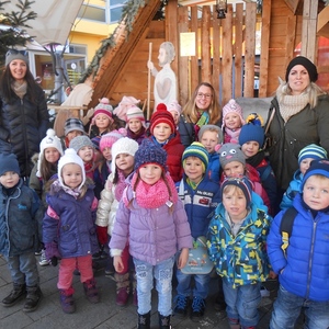 Auch der Kindergarten in der Schulgasse stattete der Krippe einen Besuch ab. Eigentlich hätte sich Sarah zurücklehnen können, denn die Kindergartenkinder kennen sich bestens mit der Weihnachtsgeschichte aus. Bevor es wieder zurück in den Kindergarten ging, sangen sie noch schöne Weihnachtslieder, was auch die Passanten sehr erfreute.