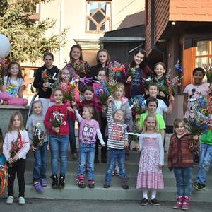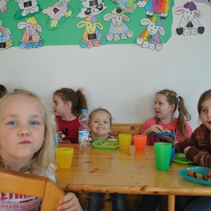Ausgetobt ging es dann weiter zum Palmbuschenbinden. Unsere schönen bunten Buschen haben wir dann ganz stolz zur Seite gelegt, damit wir uns stärken können. Zum Glück hatten Sarah und Sylvia für uns gebacken :-)„smile“-Emoticon