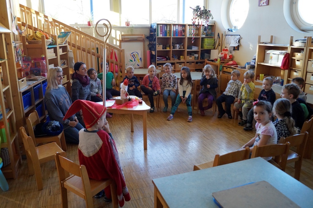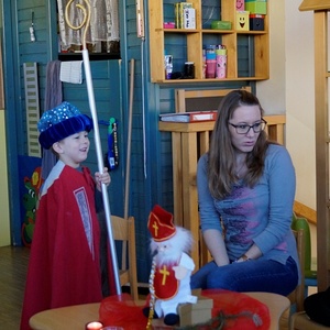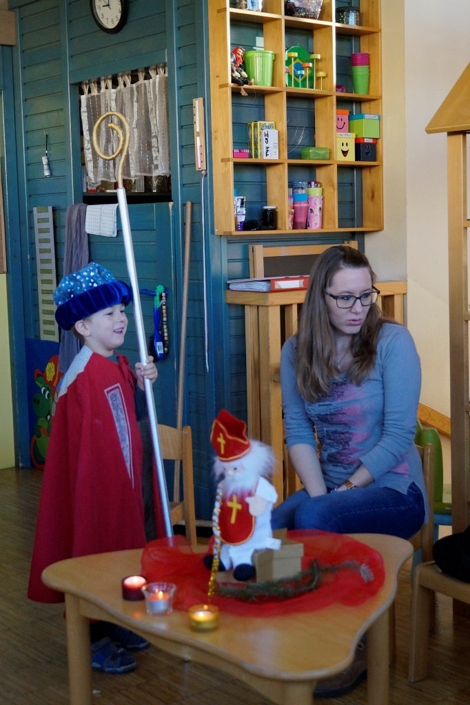Aber natürlich nicht auf Dauer :-) Bepackt mit Hüten, einem Umhang und dem Bischofsstab besuchte sie die blaue, rote und grüne Gruppe des Kindergartens Farrach um den Kindern eine Nikolausgeschichte zu erzählen - mit Hilfe von den lieben Kindergartenkindern.